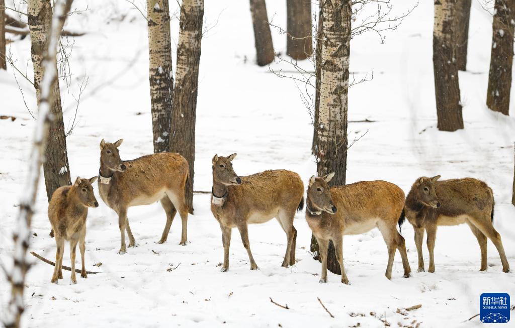 2月9日在內蒙古大青山國家級自然保護區拍攝的麋鹿。