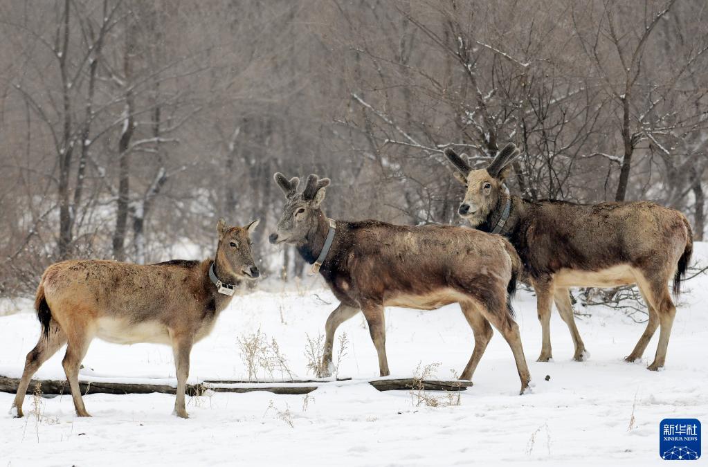 2月9日在內蒙古大青山國家級自然保護區拍攝的麋鹿。
