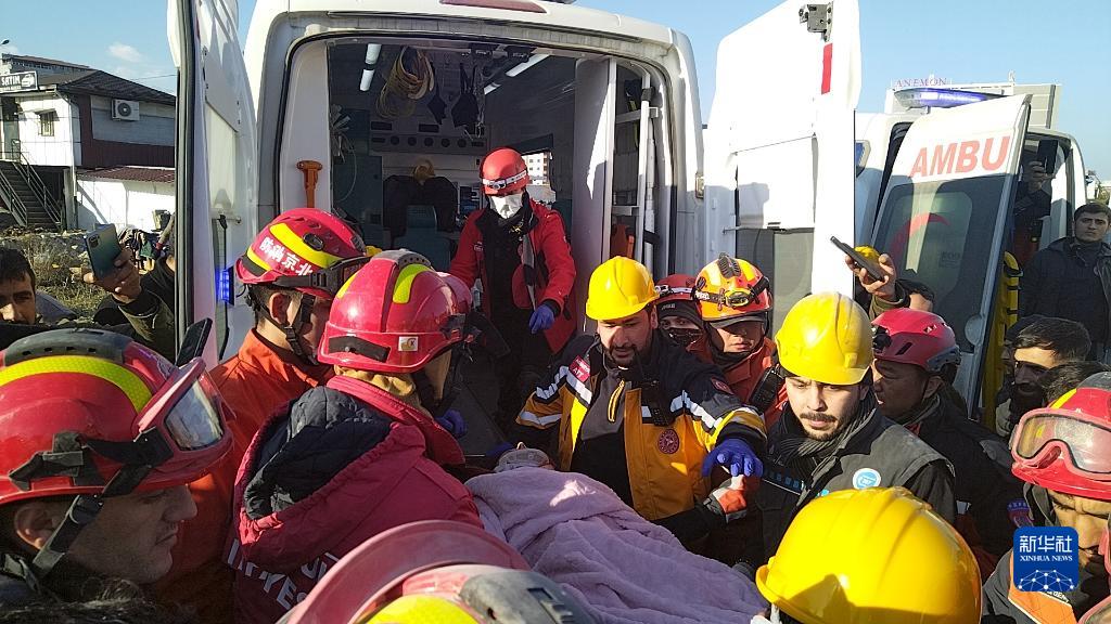 在土耳其南部地震重災區哈塔伊省安塔基亞市,中國救援隊同土耳其救援隊合作,于當地時(shí)間9日下午救出一名被埋在樓房廢墟下的女性幸存者。新華社記者 王騰飛 攝