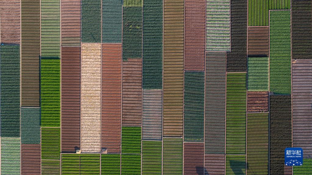 早春時(shí)節,云南省玉溪市通??h田園風(fēng)光秀美。五彩斑斕的農田與湖水、山巒交相輝映,構成了一幅美麗的畫(huà)卷。新華社記者 胡超 攝