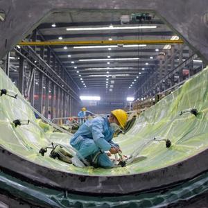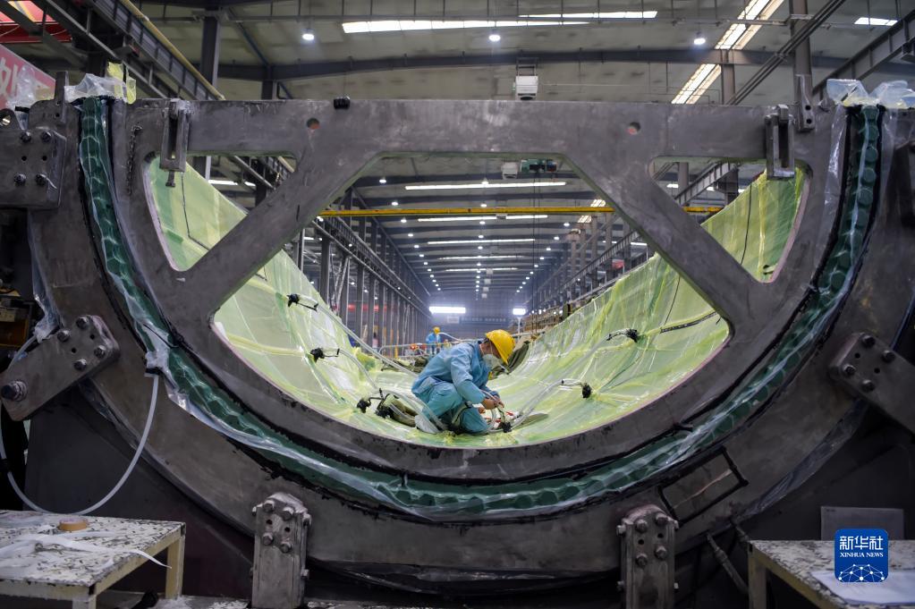 2月9日,工人在株洲時(shí)代新材料科技股份有限公司蒙西分公司風(fēng)力發(fā)電葉片生產(chǎn)車(chē)間內作業(yè)。