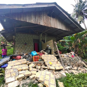 這是2月9日在印度尼西亞查亞普拉拍攝的在地震中損毀的房屋。