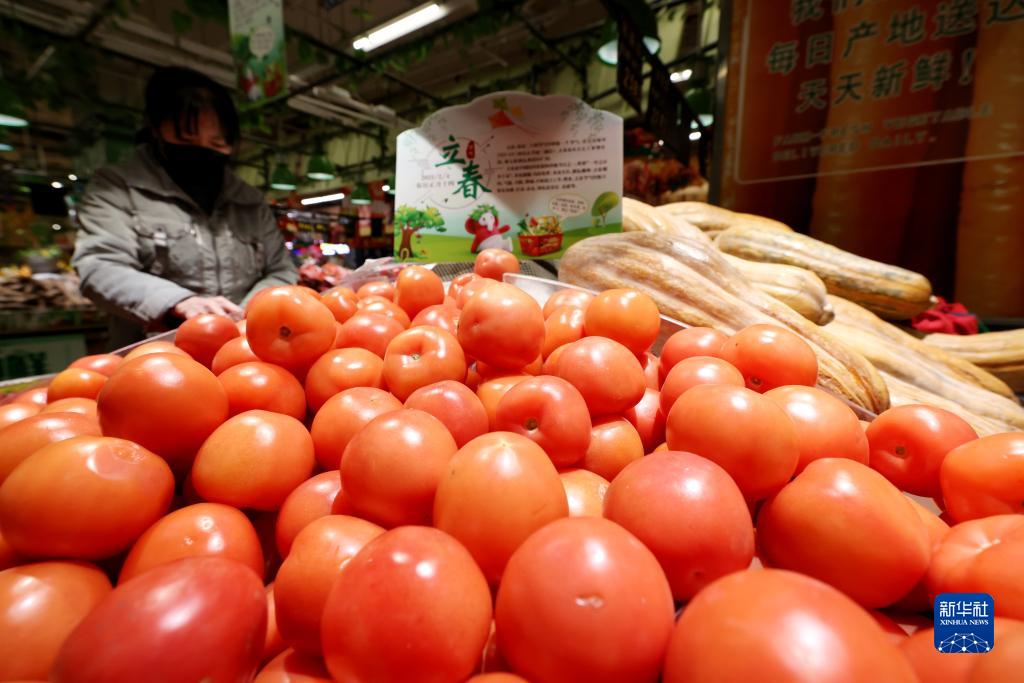 2月10日,消費者在山東省棗莊市一家超市選購西紅柿。