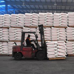 2月8日,在位于河南省商丘市寧陵縣的嘉施利(寧陵)化肥有限公司,工作人員在裝運化肥。