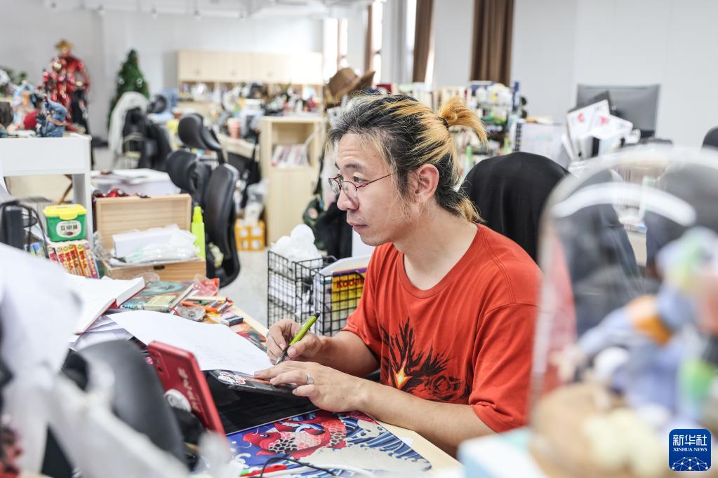 2月9日,漫畫(huà)家“極樂(lè )鳥(niǎo)”在??谑旋垬蜴偛龑W(xué)村的“燚界·漫創(chuàng )社”創(chuàng )業(yè)孵化基地設計動(dòng)漫作品。