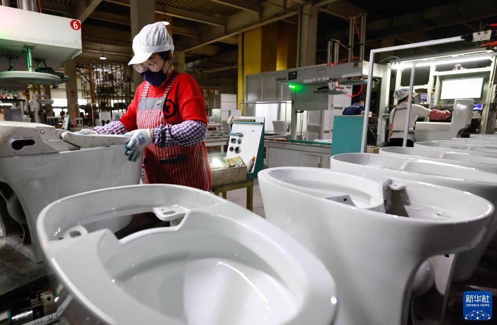 2月10日,工人在唐山市豐南區一家衛浴企業(yè)的生產(chǎn)車(chē)間工作。