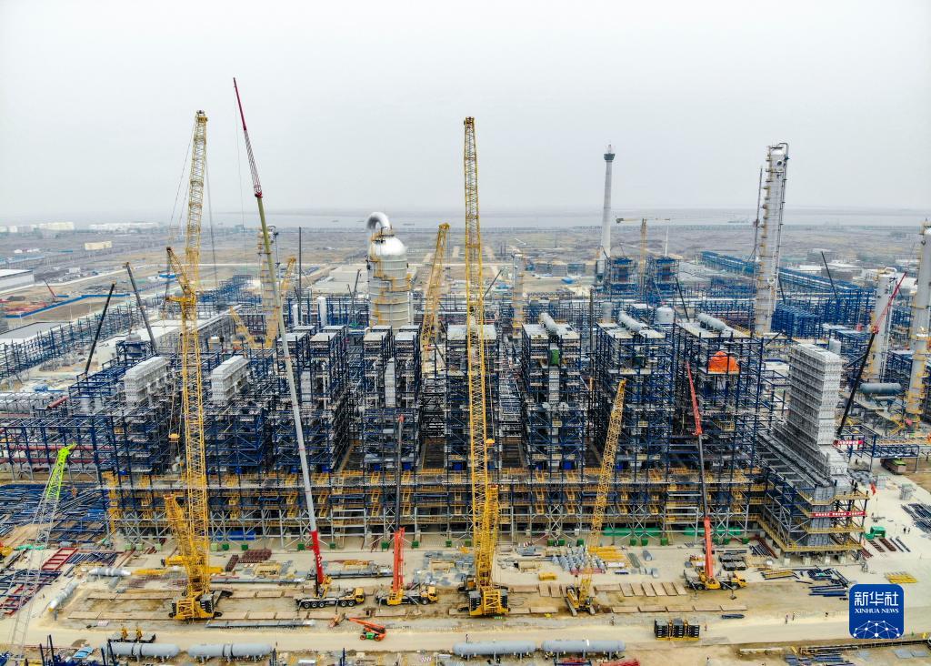 這是2月9日拍攝的天津南港乙烯項目建設施工現場(chǎng)(無(wú)人機照片)。