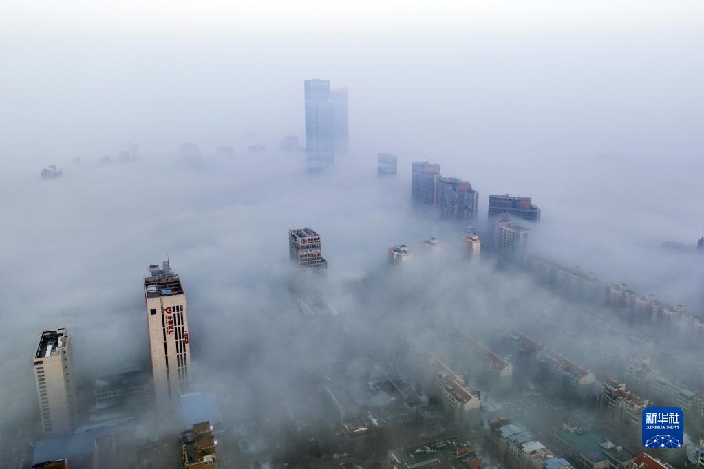 當日,寧夏銀川市出現平流霧景觀(guān),城市建筑若隱若現,如夢(mèng)如幻。