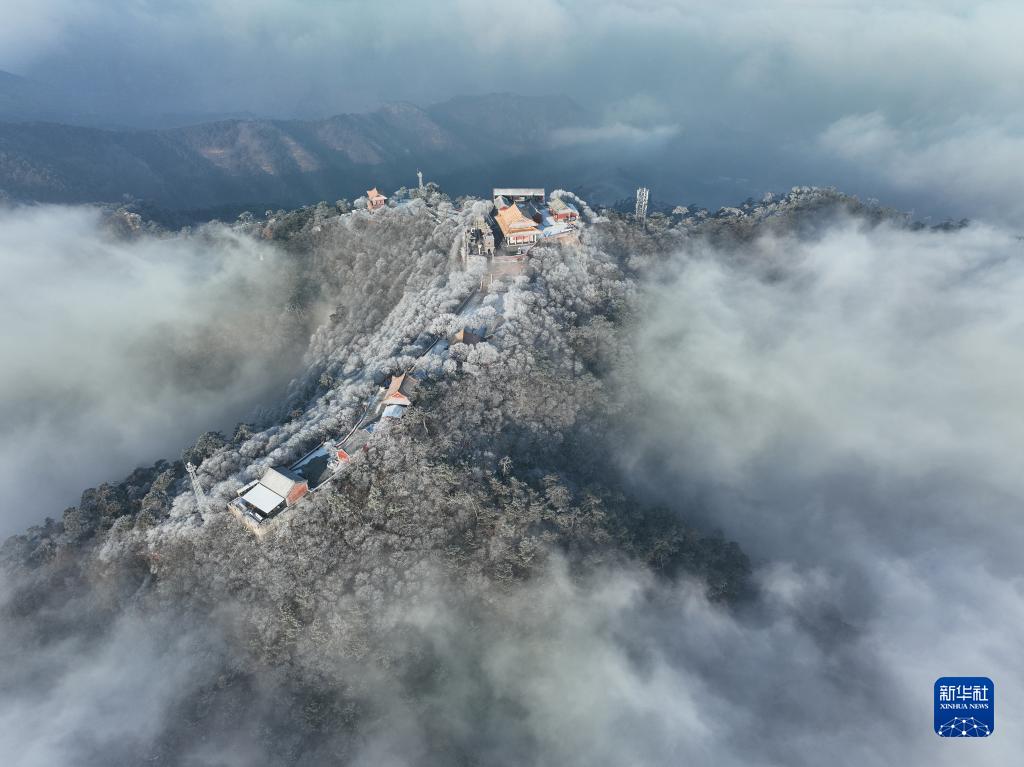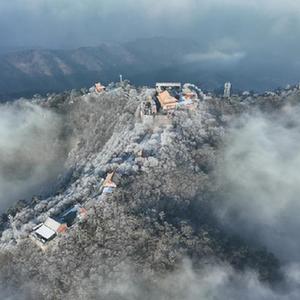 當日,雪后的河北唐山市遷西縣出現云海霧凇景觀(guān),山峰、樹(shù)木、古建筑在云霧中時(shí)隱時(shí)現,美如畫(huà)卷。