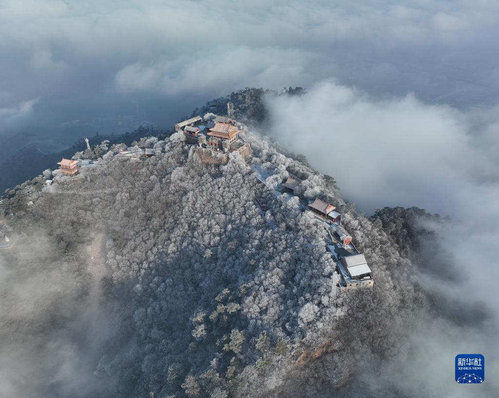 當日,雪后的河北唐山市遷西縣出現云海霧凇景觀(guān),山峰、樹(shù)木、古建筑在云霧中時(shí)隱時(shí)現,美如畫(huà)卷。