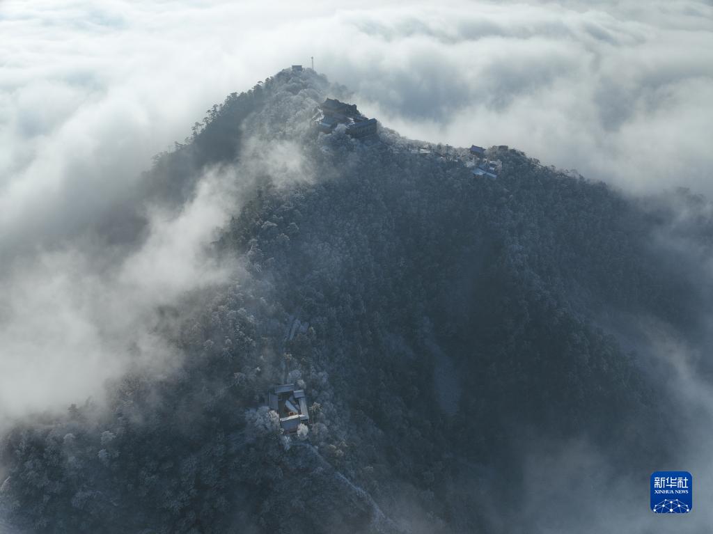 當日,雪后的河北唐山市遷西縣出現云海霧凇景觀(guān),山峰、樹(shù)木、古建筑在云霧中時(shí)隱時(shí)現,美如畫(huà)卷。