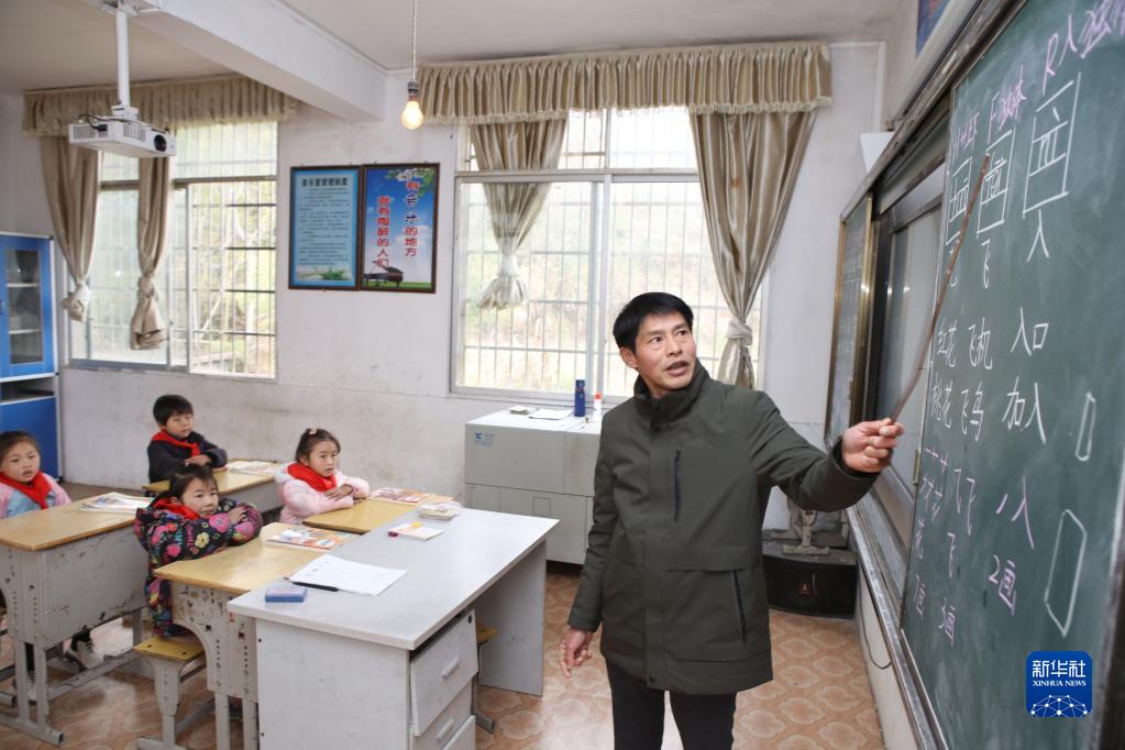 在楠木鄉官溪小學(xué),賴(lài)小田給孩子們上語(yǔ)文課(2月7日攝)。