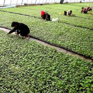 2月10日,在安徽省合肥市包河區煙墩街道一家種苗基地,農民在整理花苗。