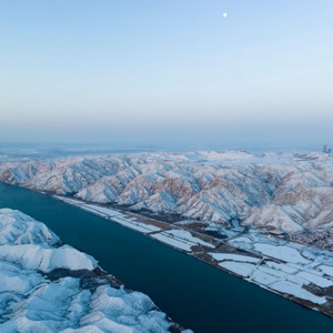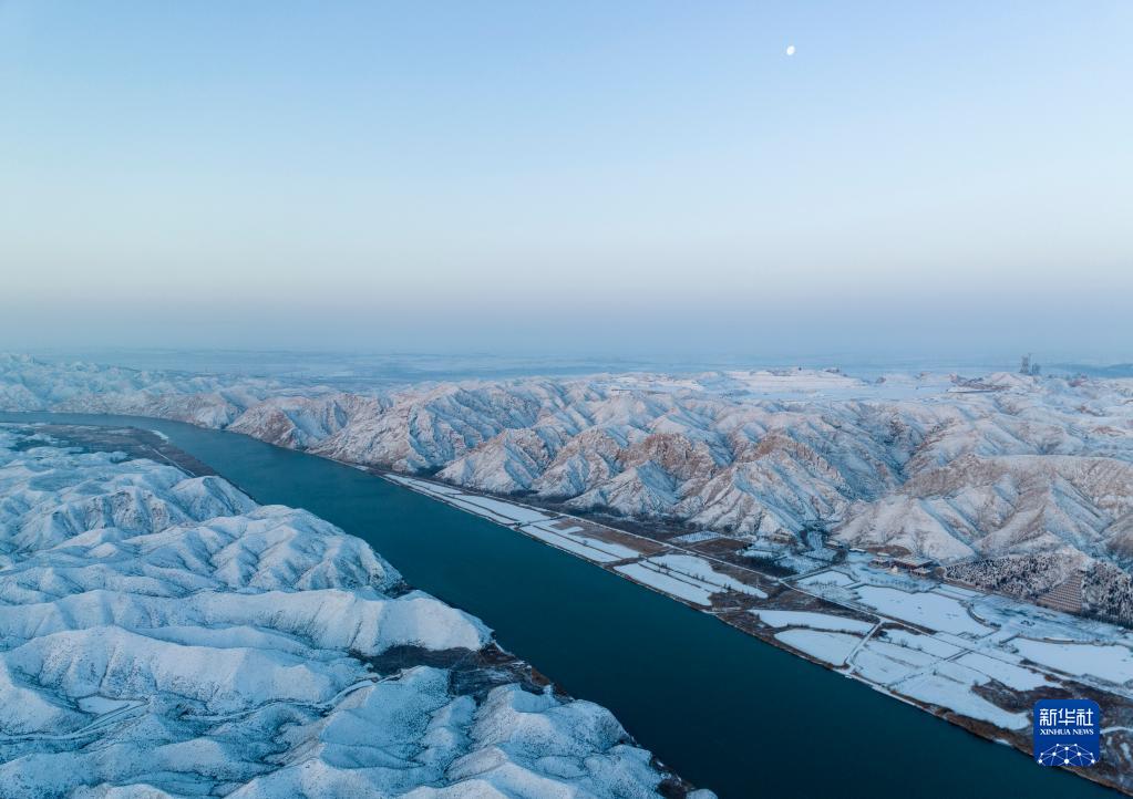 大雪過(guò)后,寧夏青銅峽黃河大峽谷銀裝素裹,黃河從峽谷間流過(guò),美如畫(huà)卷。新華社發(fā)(祁瀛濤攝)