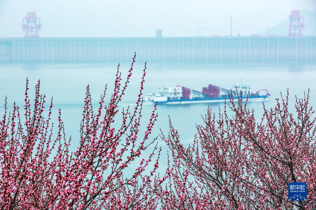 2月10日,船舶行駛在長(cháng)江三峽湖北省宜昌市秭歸縣水域。