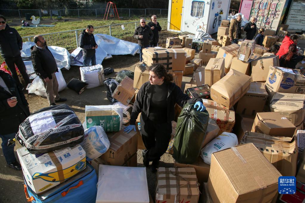 2月9日,在英國倫敦,志愿者準備將人們向土耳其震區提供的援助物資裝車(chē)。