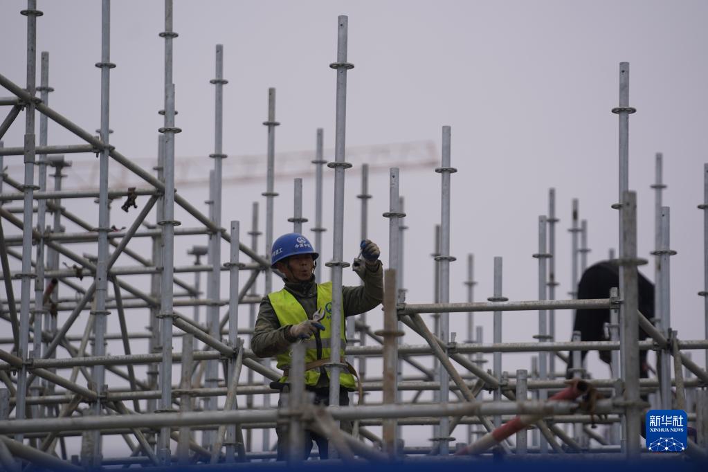 2月10日,工作人員在南昌東站現場(chǎng)施工。