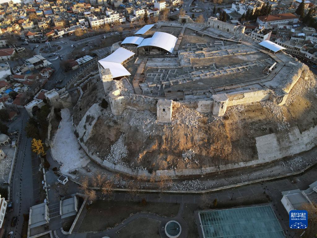 這是2月10日用無(wú)人機航拍的土耳其加濟安泰普古堡。