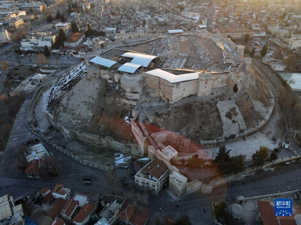這是2月10日用無(wú)人機航拍的土耳其加濟安泰普古堡。