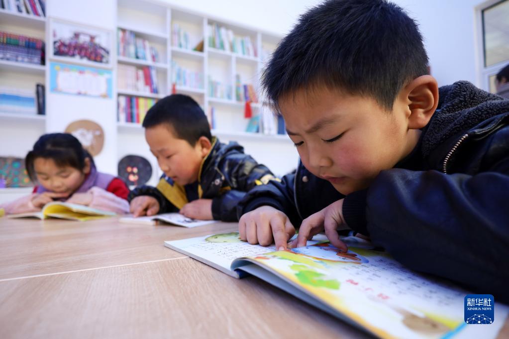 在隴南市徽縣虞關(guān)鄉許壩村“幸福家園”,小朋友在看書(shū)(2月11日攝)。