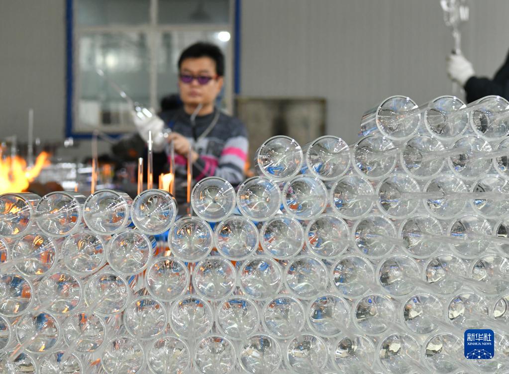 2月11日,河北省河間市一家工藝玻璃制品生產(chǎn)企業(yè)工人在車(chē)間內加工產(chǎn)品。