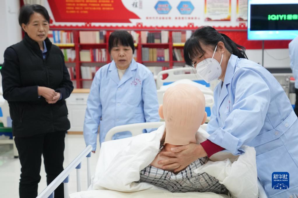 老年人衣物穿脫、飲食照護、清潔照護、急救操作……這些是幾天專(zhuān)項培訓中,薛四四不斷學(xué)習和強化練習的內容。