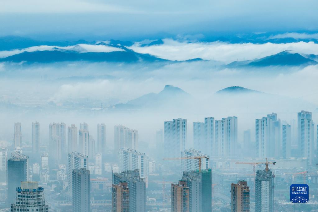 當日,浙江省臺州市椒江區,在暖濕氣流和降雨的共同影響下,霧氣像一層層薄紗將山川、河流、城市籠罩,朦朦朧朧,猶如一幅美麗的生態(tài)城市畫(huà)卷。