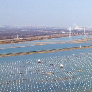2月7日拍攝的建設中的天津濱海新區龍源海晶鹽光互補項目(無(wú)人機照片)。