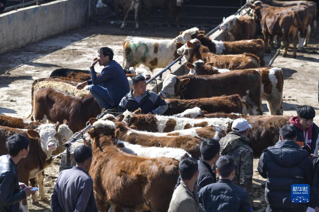近日,貴州省威寧縣牛市交易迎來(lái)旺季。來(lái)自云南、四川、廣西及貴州當地的農戶(hù)和商販聚集到該縣小海鎮牲畜交易市場(chǎng),選購和銷(xiāo)售耕牛、能繁母牛等,以便及時(shí)投入到春耕備耕生產(chǎn)中。