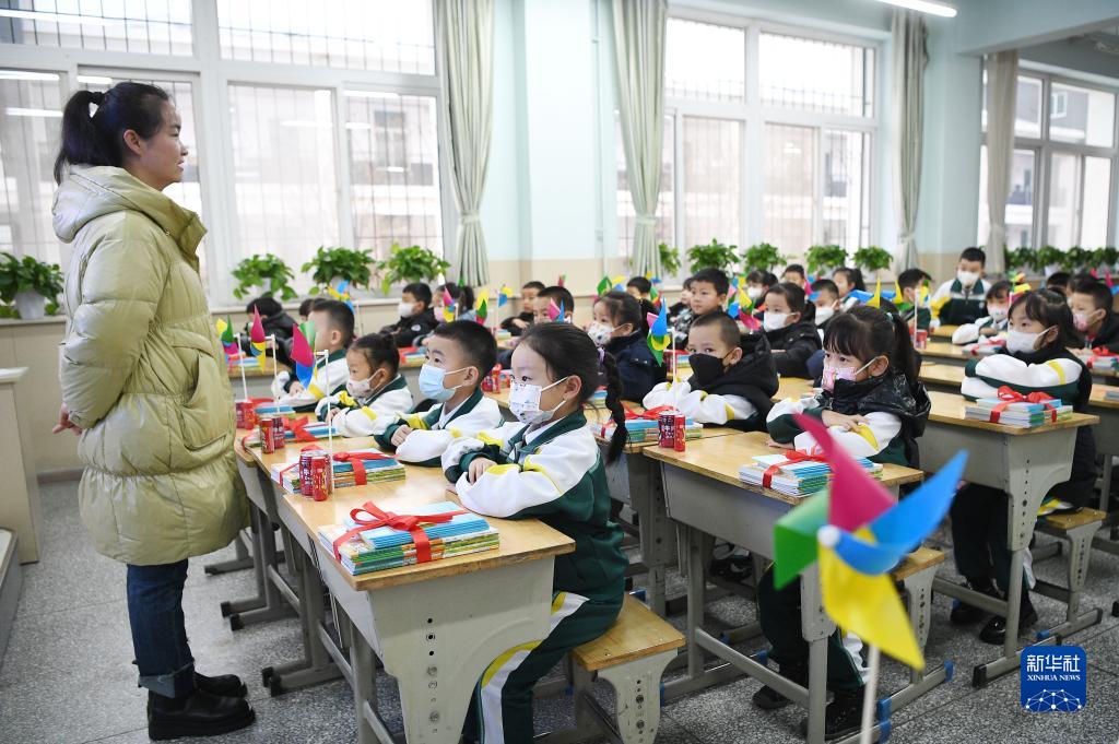 2月12日,銀川市興慶區實(shí)驗二小學(xué)生在布置一新的教室里迎來(lái)新學(xué)期。