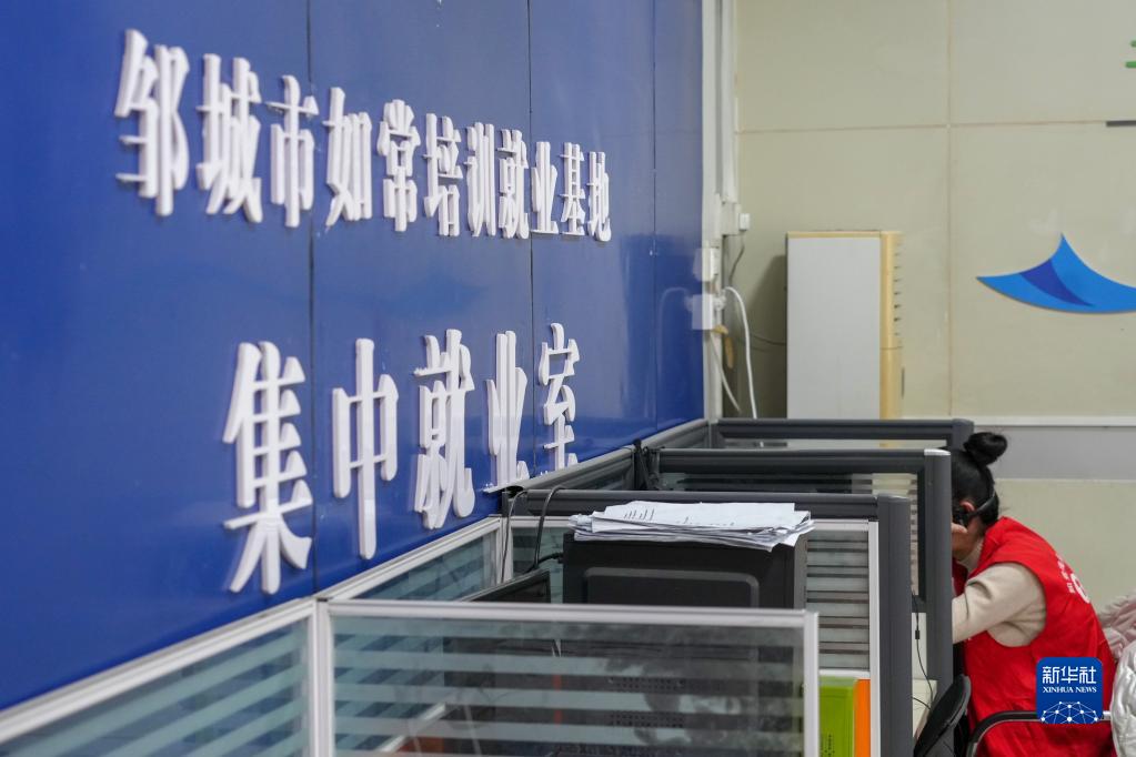 2月12日,在山東鄒城市中心店鎮如康家園內,殘疾人在進(jìn)行電話(huà)客服工作。