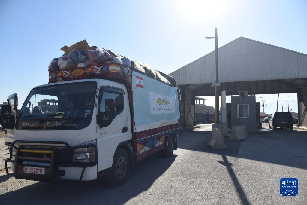 2月11日,裝載救援物資的黎巴嫩車(chē)輛準備通過(guò)邊境的阿里達口岸進(jìn)入敘利亞。