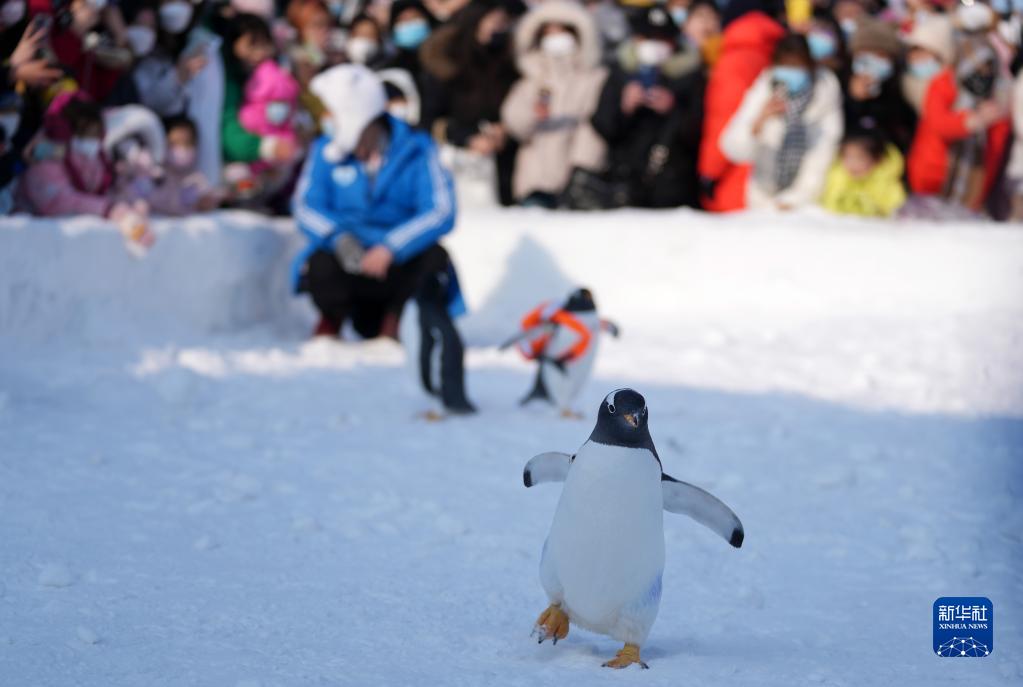 時(shí)下,“冰城”哈爾濱市正值冰雪旅游季。哈爾濱極地公園的企鵝每天都會(huì )外出“巡游”,吸引許多游客前來(lái)觀(guān)賞。