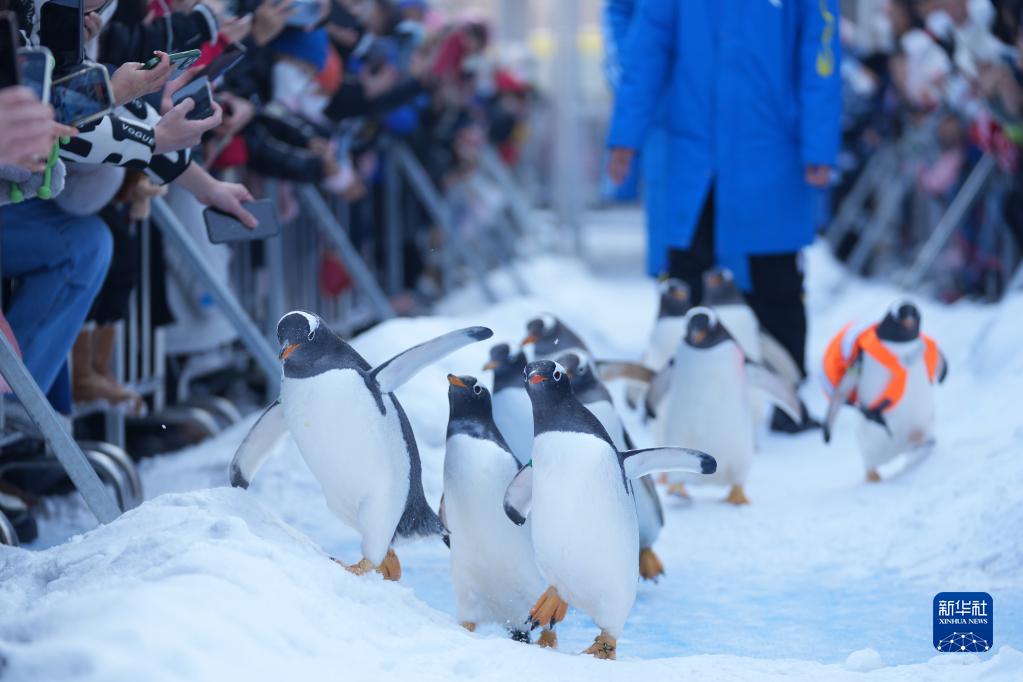 時(shí)下,“冰城”哈爾濱市正值冰雪旅游季。哈爾濱極地公園的企鵝每天都會(huì )外出“巡游”,吸引許多游客前來(lái)觀(guān)賞。