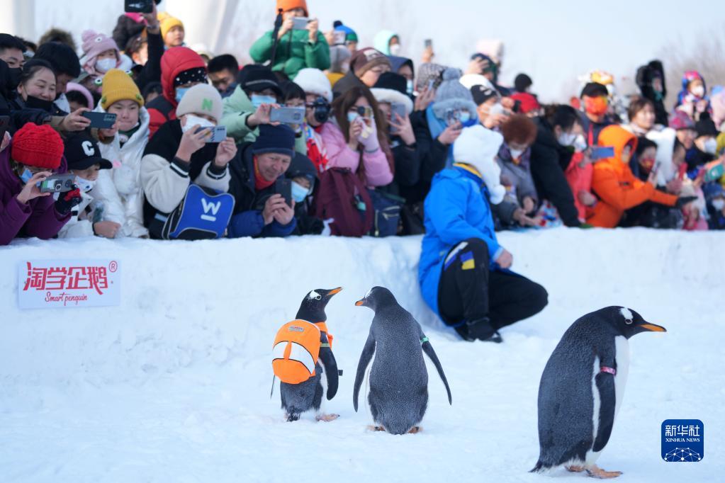 時(shí)下,“冰城”哈爾濱市正值冰雪旅游季。哈爾濱極地公園的企鵝每天都會(huì )外出“巡游”,吸引許多游客前來(lái)觀(guān)賞。