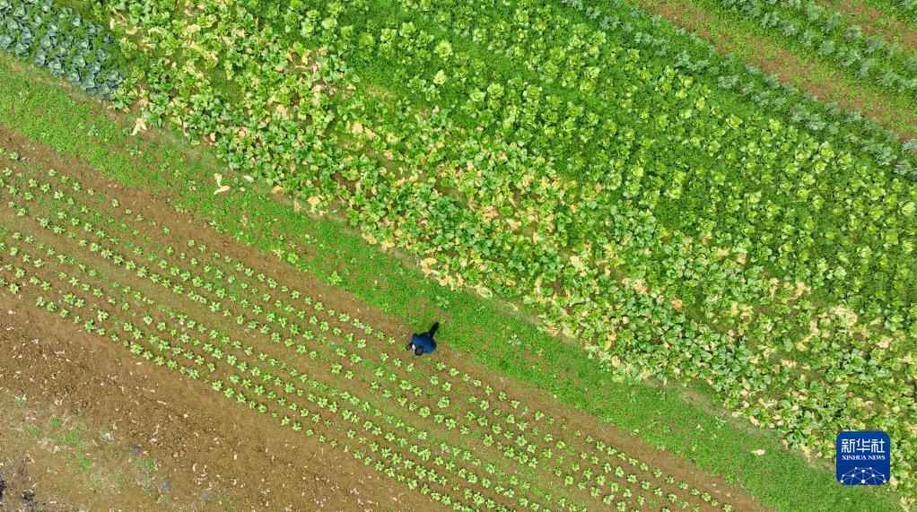 2月12日,村民在貴州省遵義市一農業(yè)園區蔬菜種植基地勞作。
