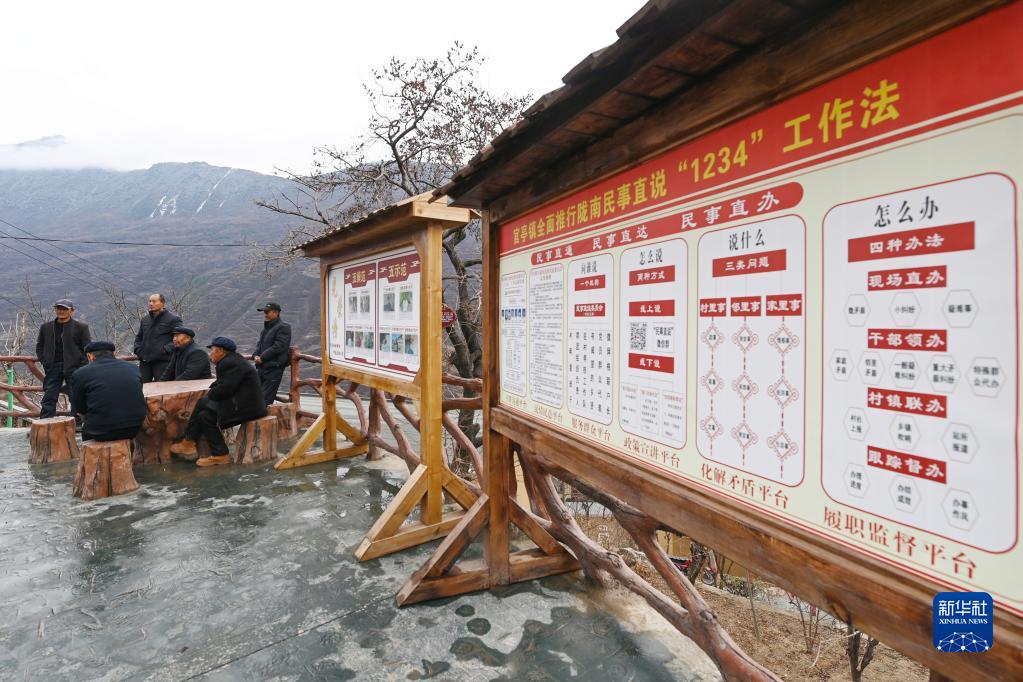 在隴南市宕昌縣官亭鎮王家村,村民向“民事直說(shuō)委員會(huì )”成員反映訴求(2月8日攝)。