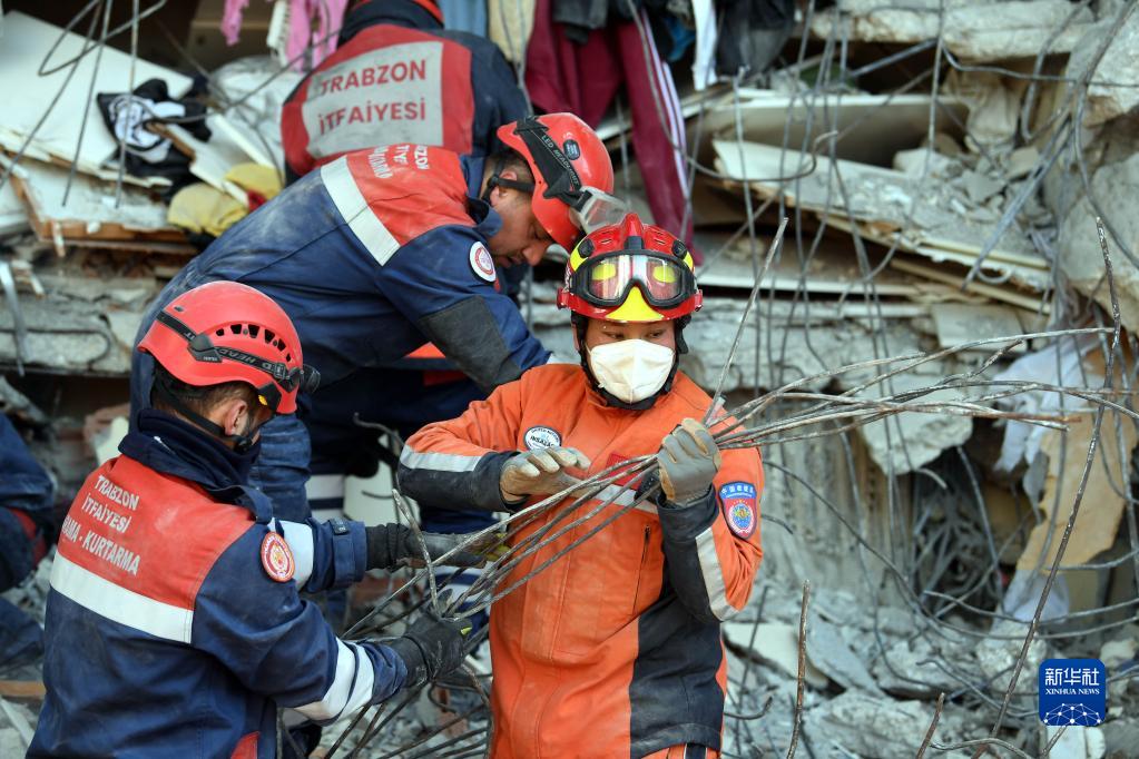 2月12日,中國救援隊在土耳其哈塔伊省安塔基亞市參與搜救。