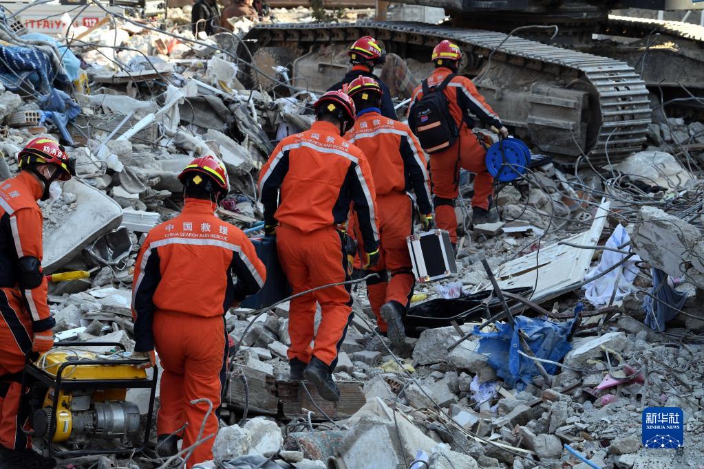 2月12日,中國救援隊隊員在土耳其哈塔伊省安塔基亞市一處地震廢墟開(kāi)展救援工作。