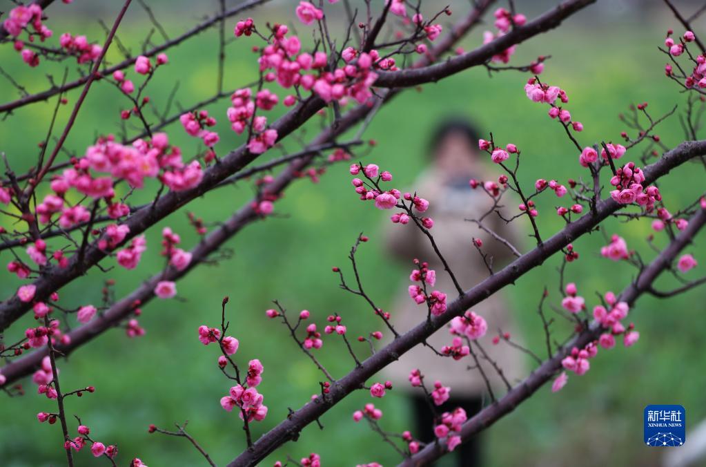 2月12日,在湖南省衡陽(yáng)市衡陽(yáng)縣西渡鎮梅花村,游客在拍攝梅花。