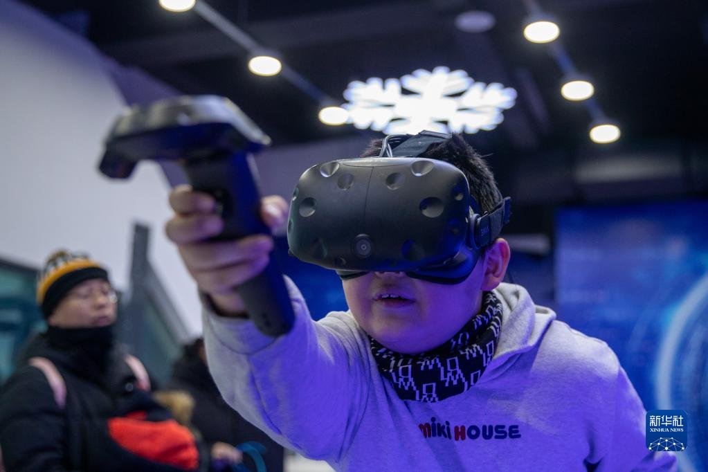 2月12日,游客在冰雪元宇宙體驗中心內游玩。