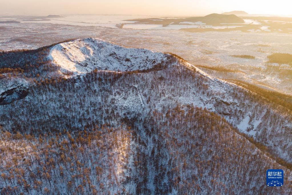 五大連池世界地質(zhì)公園老黑山火山口景色(2月12日攝,無(wú)人機照片)。