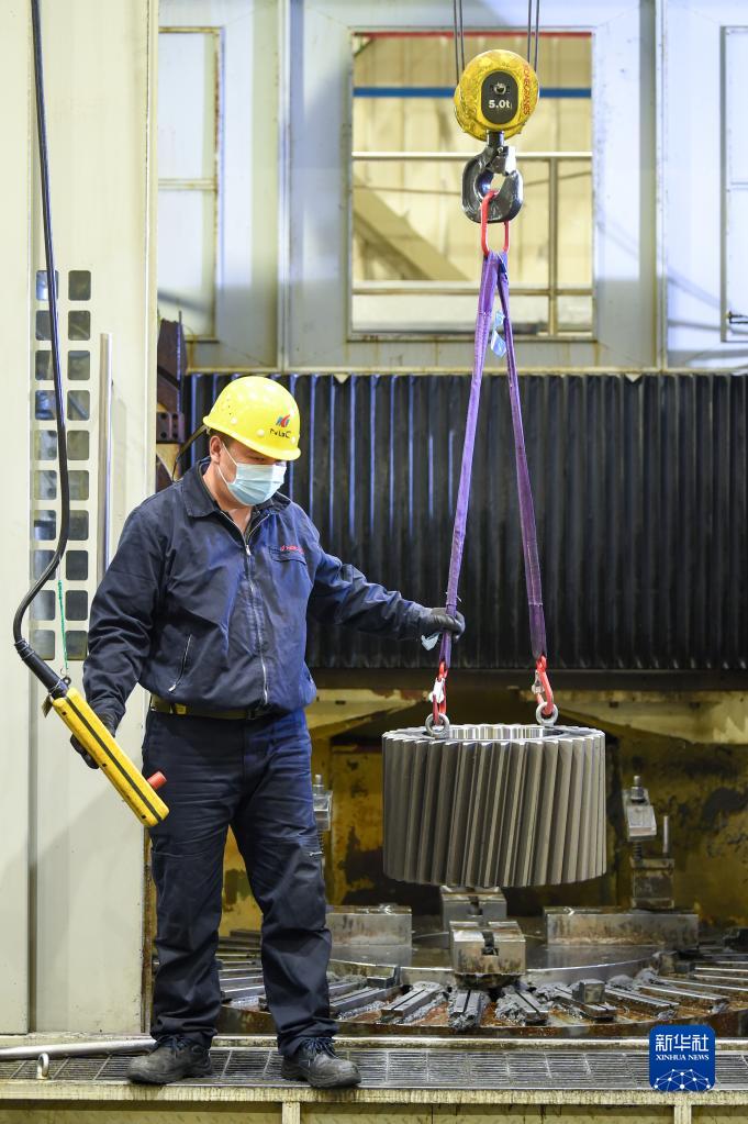 2月13日,工人在南高齒(包頭)傳動(dòng)設備有限公司生產(chǎn)車(chē)間內作業(yè)。