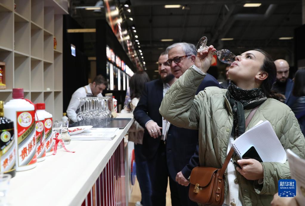 2月13日,嘉賓在法國巴黎國際葡萄酒及烈酒博覽會(huì )上品嘗貴州茅臺酒。
