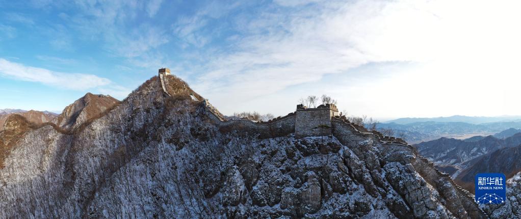 2月13日拍攝的箭扣長(cháng)城(無(wú)人機全景照片)。