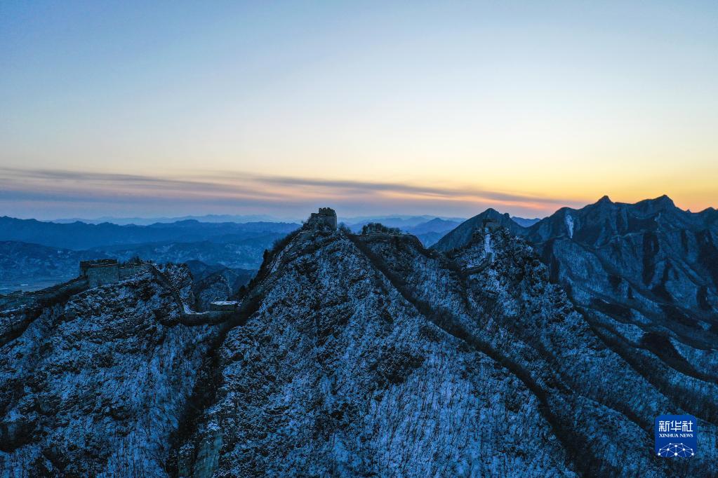 晚霞中的箭扣長(cháng)城(2月13日攝,無(wú)人機照片)。
