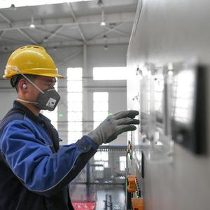 2月13日,工人在包頭江馨微電機科技有限公司生產(chǎn)車(chē)間內作業(yè)。