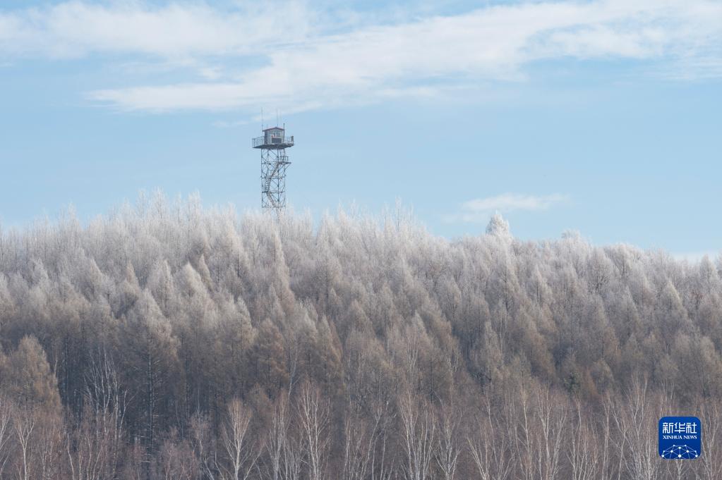 位于黑龍江省黑河市的黑龍江省沾河林業(yè)局有限公司施業(yè)區內的防火瞭望塔與霧凇景觀(guān)(2月13日攝)。
