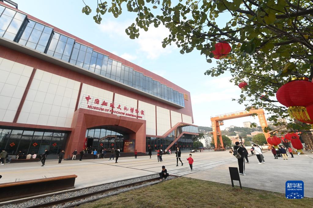 2月12日,游客在中國船政文化城核心區內的中國船政文化博物館前游玩。