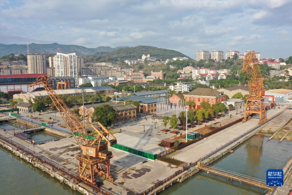 2月12日,中國船政文化城核心區船廠(chǎng)片區一角(無(wú)人機照片)。